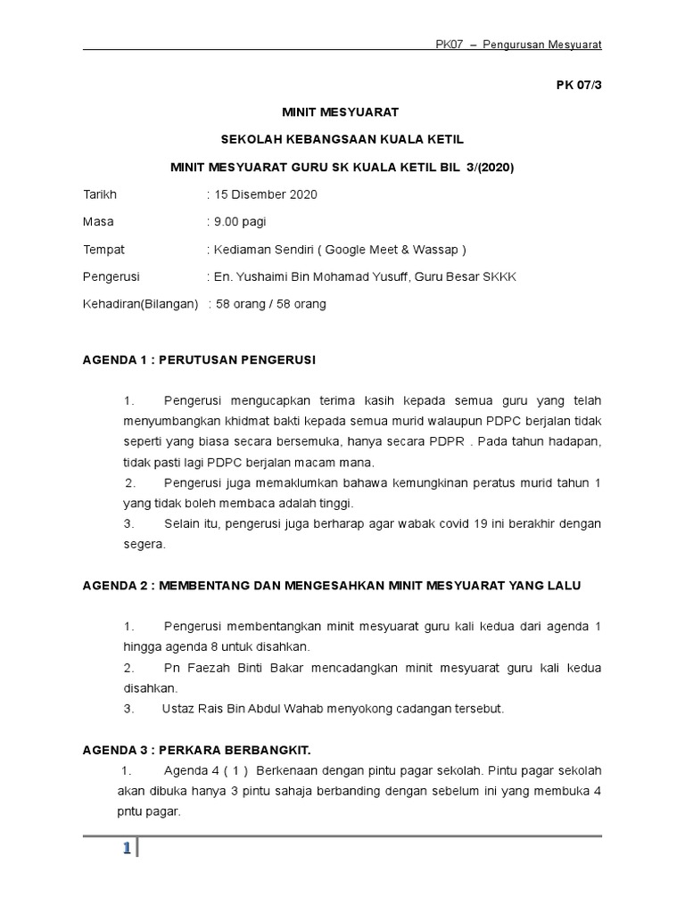 Minit Mesyuarat Guru Kali Kedua Skfk2 Flip Ebook Pages 1 7 Anyflip Anyflip. Koleksi minit mesyuarat ini boleh digunakan oleh guru-guru untuk tahun ini atau rujukan tahun-tahun akan datang. Mematuhi SOP dan sentiasa memakai facemask serta menggunakan handsnitizer.